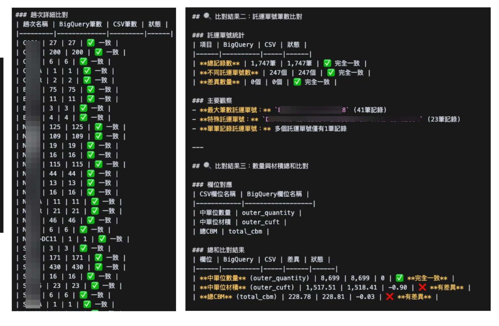 這種程度的驗證,用人根本做不到。基本上,QA因為是高重複度,高精準度要求的場景,很適合機械來做。所以只要用提示詞設定 QA 任務的框架,加上正確 PRD 的上下文, 在我經歷的場景下,AI其實 QA 效率遠高於人。