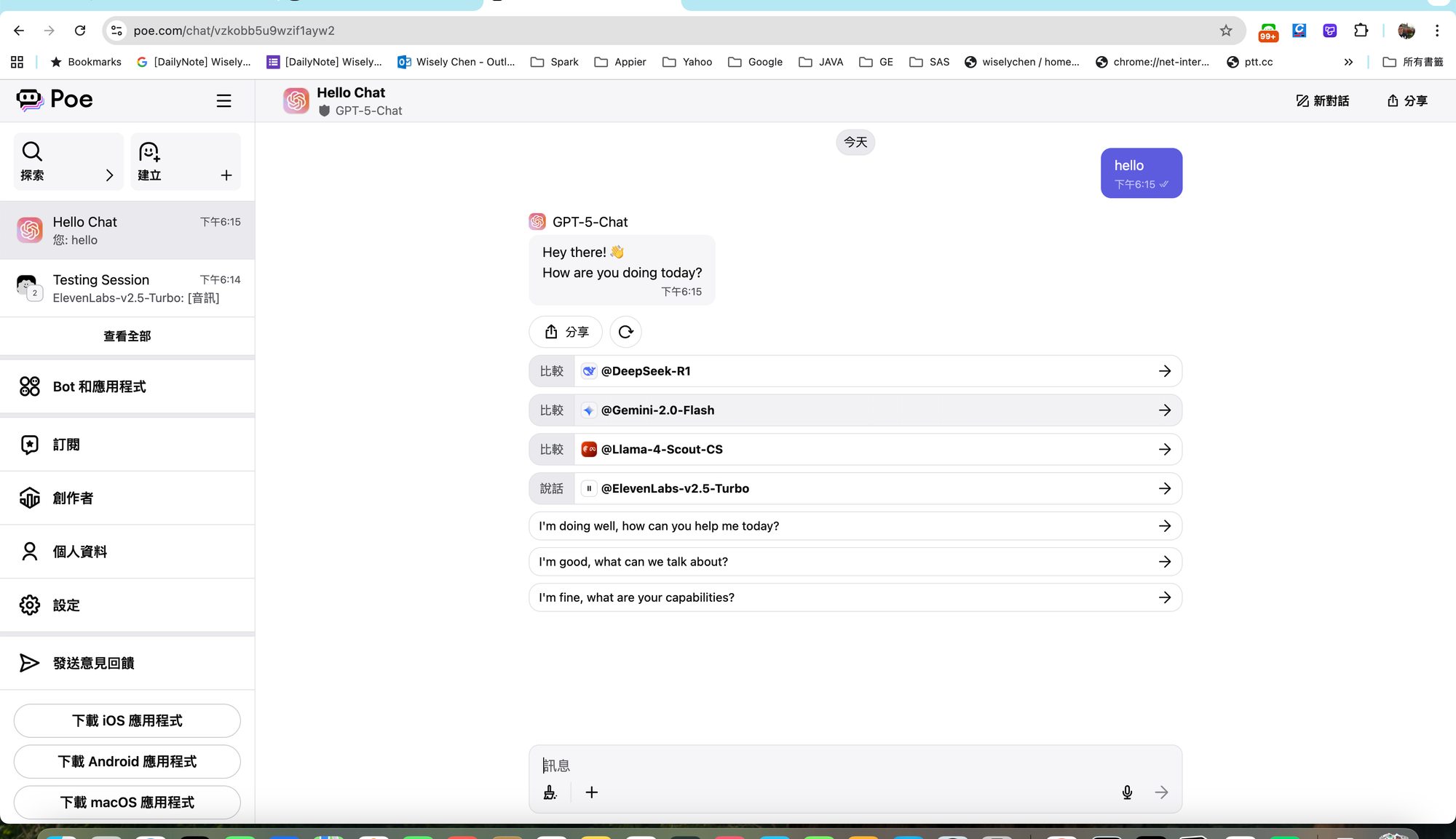 不用能 Claude Code 讓我一瞬間好像斷了一隻手,不過 Grok/Perplexity 可以用,當然中國牌 DeepSeek, 千問也是可以用。問了一下香港的同事,目前大家使用較多的都會是 POE (然後選 GPT model ) ,這還是我第一次看到蠻多人用 POE的場景, 當然也蠻常用 Deepseek 的。